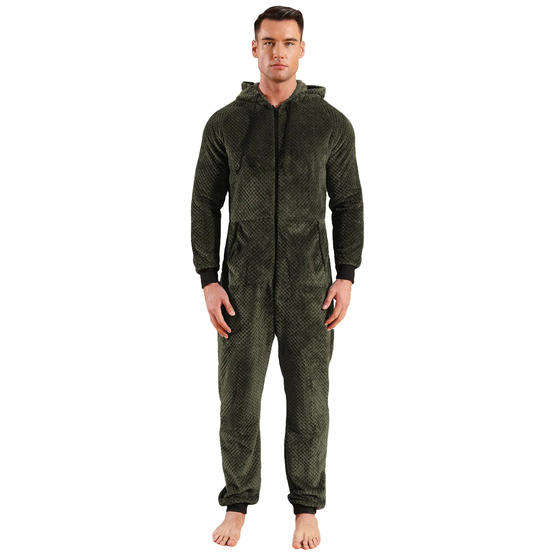 Experience ultimate comfort and warmth with our premium men's hooded fleece onesie. Perfect for lounging at home or staying cozy during cold winter nights, this all-in-one jumpsuit combines style with functionality.